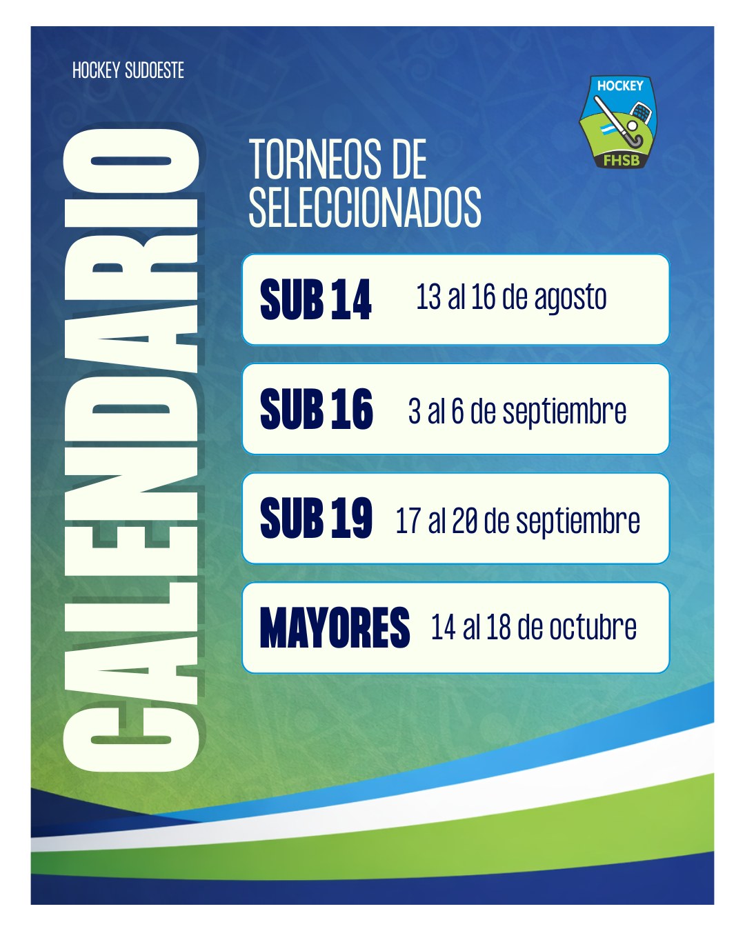 Torneos de Seleccionados 2026 Sub 14: 13 al 16 de agosto Sub 16: 3 al 6 de septiembre Sub 19: 17 al 20 de septiembre Mayores: 14 al 18 de octubre ¡A prepararse par[...]