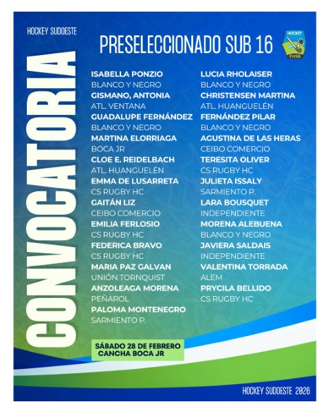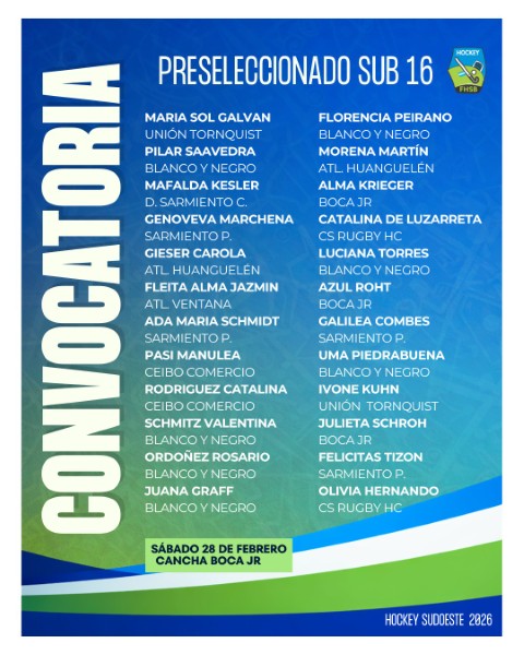 Convocatoria preseleccionado S El DT Ariel Sonzini convoca a las jugadoras al primer entrenamiento del año, en ???? Cancha de Boca Jr. Sábado 28 de febrero Turnos:[...]